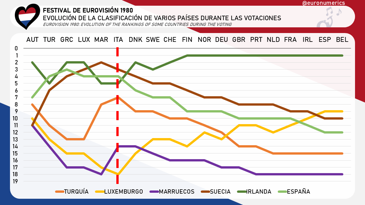 Para concluir, la participación de Marruecos dejó su huella en los resultados de Eurovisión 1980. Ese año la polaridad Norte-Sur se hizo muy notable en las votaciones por el orden de votación, que dio lugar a un vuelco en las votaciones. ¿Volveremos a ver a algún país de África participando en Eurovisión?