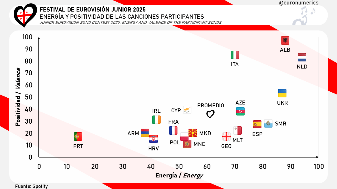 De hecho, si nos fijamos en el gráfico de energía y positividad de Spotify veremos confirmado que estos grupos de países están separados entre sí.